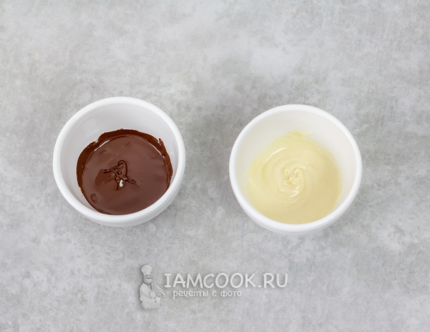 Разломите шоколад на мелкие кусочки и растопите в микроволновой печи или на водяной бане.