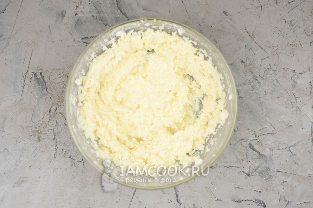 Миксером будем взбивать до мягкого, кремообразного состояния. Вобьем яйцо в эту масляную смесь и продолжим взбивать миксером еще 30 секунд.