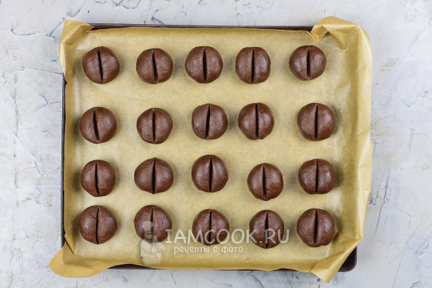 Все заготовки выложим на противень, застеленный пергаментом для выпекания. Будем выпекать в духовке при температуре 180 градусах 15-20 минут.