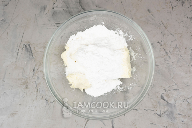 В миску выложим мягкое масло и добавим сахарную пудру.