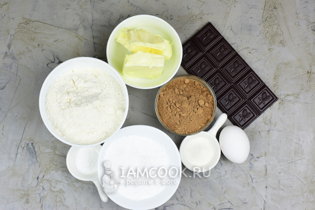 Подготовим необходимые ингредиенты для шоколадного печенья «Кофе» (или «Кофейные зерна»). Масло должно быть мягким, поэтому заранее выложим его на стол из холодильника.
