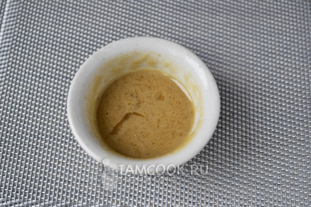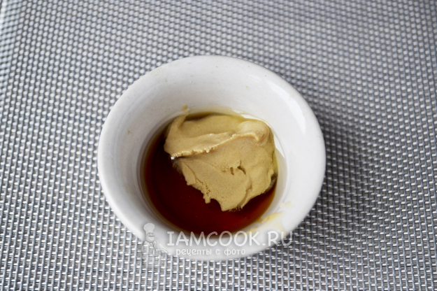 Для заправки в небольшой мисочке соедините урбеч, жидкий мед и растительное масло. Вместо растительного можно взять растопленное сливочное масло.