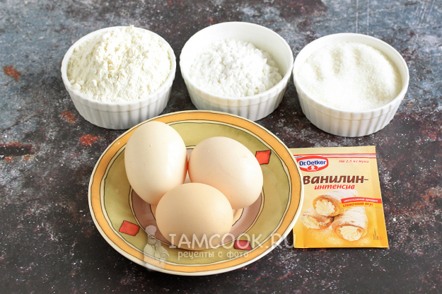 Итак, взвесьте все необходимое для бисквита. Если яйца СО, то берите 4 штуки, ориентируйтесь на их вес. Крахмал уменьшает количество клейковины в тесте и делает бисквит нежнее. Его можно заменить пшеничной мукой.
