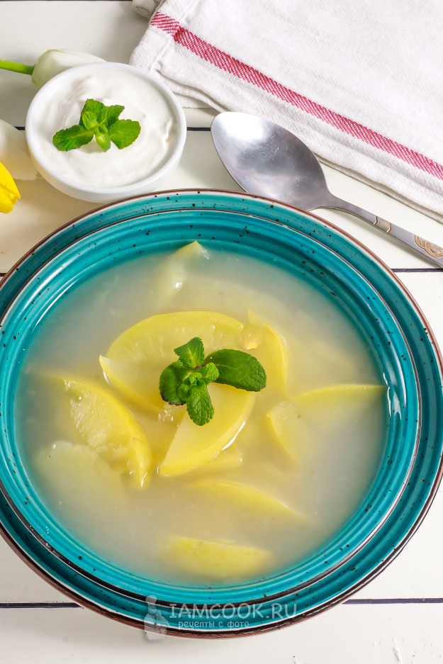 Выложите монастырский овсяный кисель с яблоками в тарелки и слегка остудите - он станет еще более густым. Подавайте его со сметаной или густым йогуртом, вареньем или джемом.