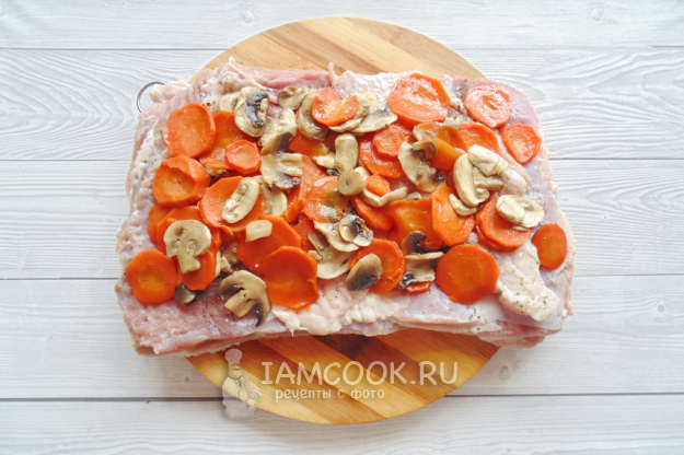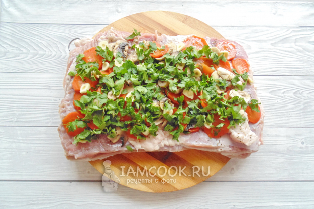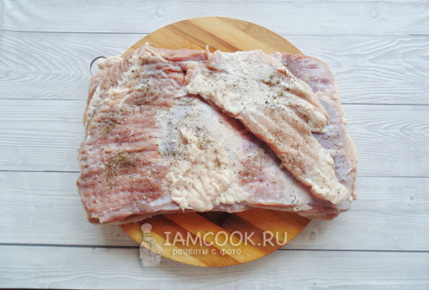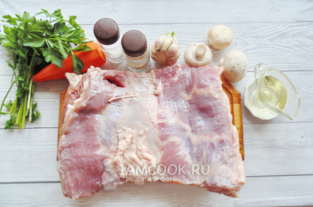 Для запекания рулета из подчеревка в духовке подготовьте все ингредиенты по списку.