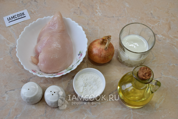 Для приготовления рубленых куриных котлет (из куриного филе) в мультиварке понадобятся следующие ингредиенты. Такие котлеты можно готовить из мяса с любой части курицы. Я буду готовить из филе грудки.