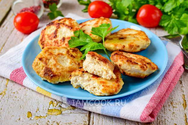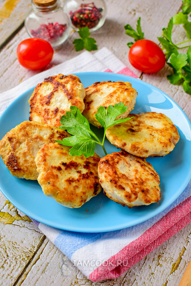 Готовые рубленые куриные котлеты можно дополнить любым гарниром или свежими овощами.