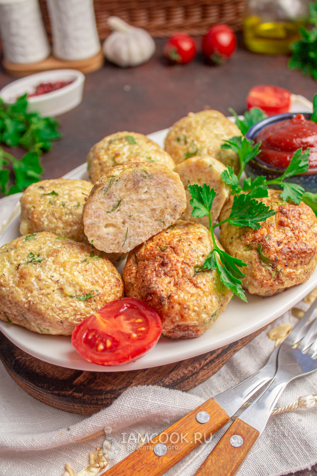 Должны получиться слегка румяные котлеты. Достаньте их из духовки и переложите на блюдо.