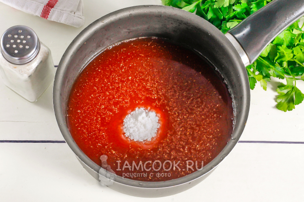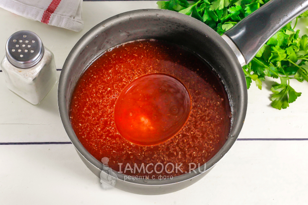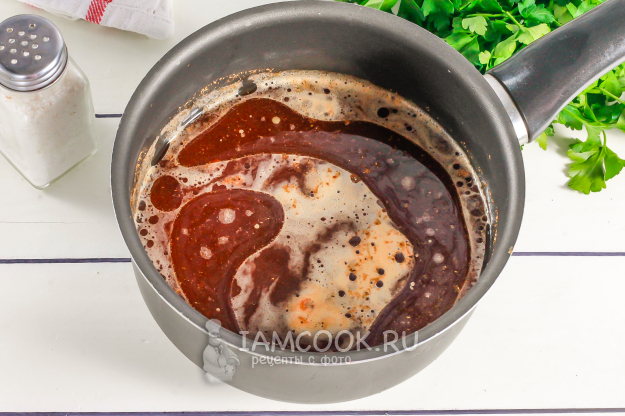 Спустя указанное время выключите нагрев и влейте уксус, перемешайте соус.