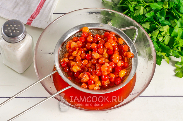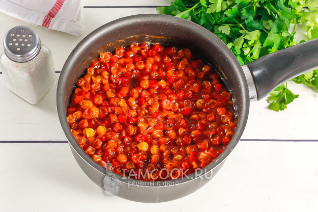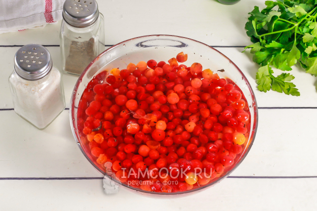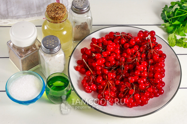 Подготовьте необходимые ингредиенты для заготовки красочного соуса из калины на зиму.