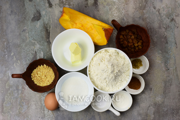 Подготовим необходимые ингредиенты для тыквенного печенья с изюмом. Тыкву очистим от семян и кожуры. Изюм промоем и высушим. Масло выложим заранее из холодильника, чтобы оно стало мягким.