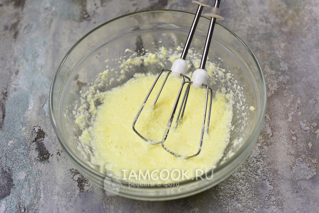 Будем взбивать миксером эти ингредиенты до получения однородной смеси.