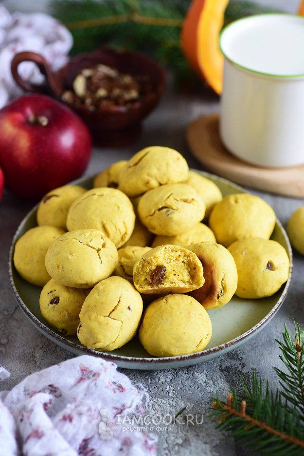 Готовое тыквенное печенье с изюмом получается мягким, в меру сладким, чуть пряным и очень вкусным. Приятного аппетита!