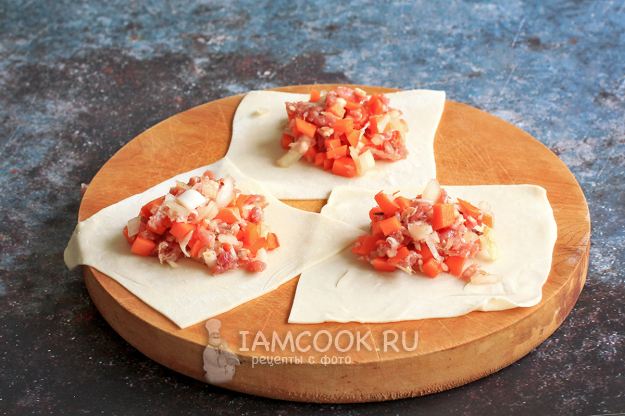 В центр каждого квадратика поместите начинку.