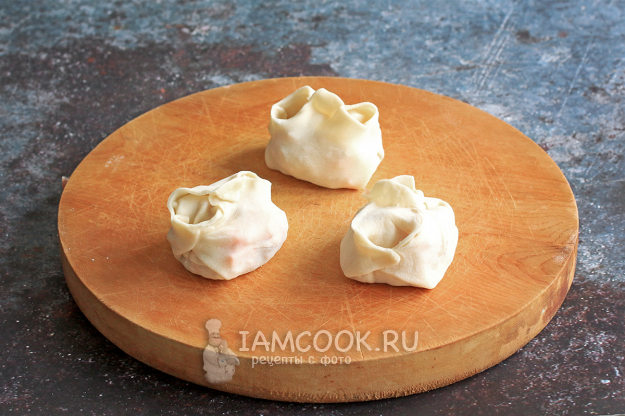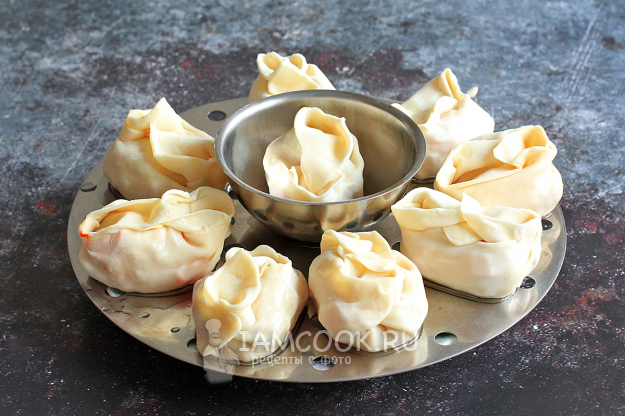 Залепите манты удобным для вас способом. Поступите подобным образом со всей порцией теста. Я всегда варю только небольшую порцию мантов для нашей семьи, обычно на два яруса мантоварки, остальные замораживаю и потом готовлю свежие.