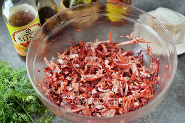Вкусный и сочный салат «Китайский дракон» готов к подаче на стол.