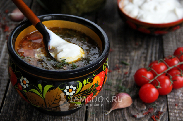 Борщ со щавелем на курином бульоне готов. При подаче можно добавить сметану и рубленую зелень.