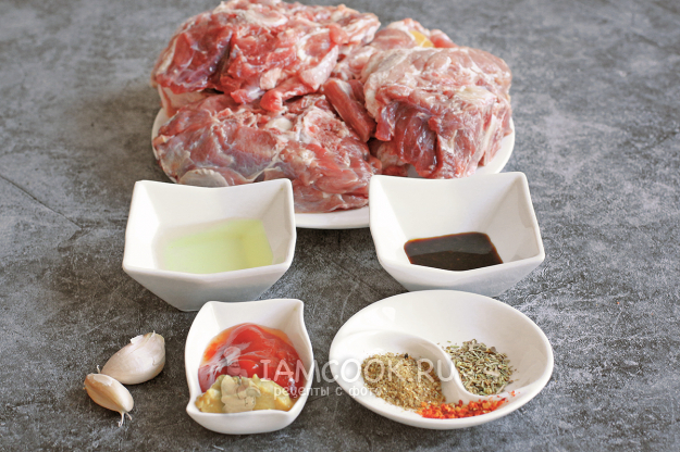 Для запекания бараньей шеи в духовке понадобятся все перечисленные ингредиенты, или вы можете взять специи по своему вкусу. У нас продают уже готовые стейки бараньей шеи, которые я использовала.