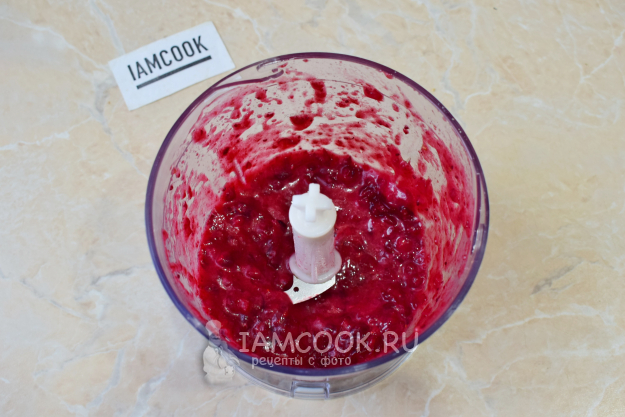 Ягоды клюквы соедините с мёдом и растительным маслом. Измельчите.