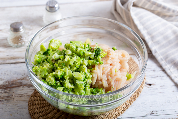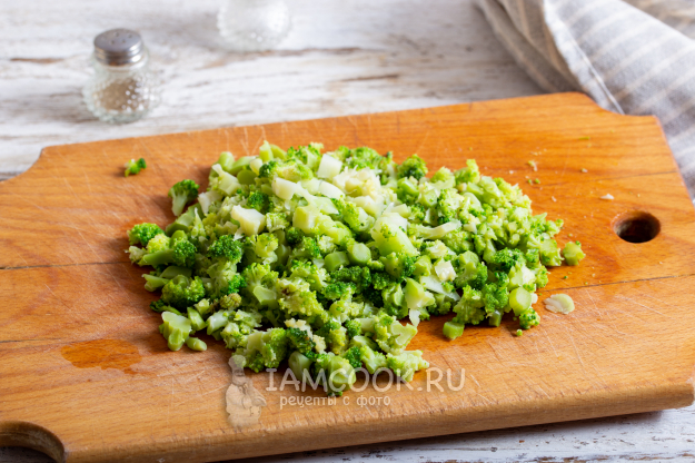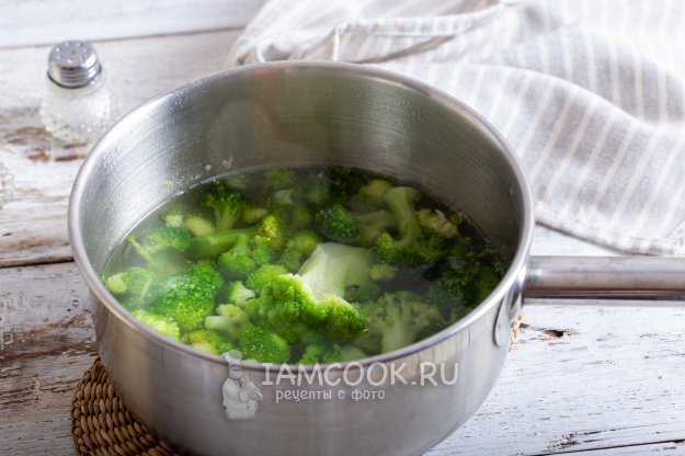 В кипящую воду опустите брокколи и проварите минут 5. Затем откиньте капусту на дуршлаг и дайте ей немного остыть.