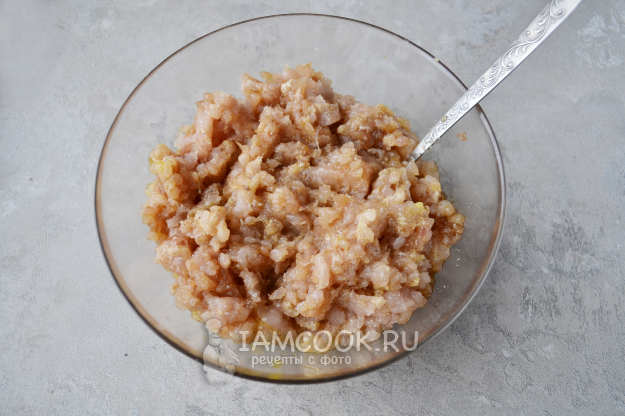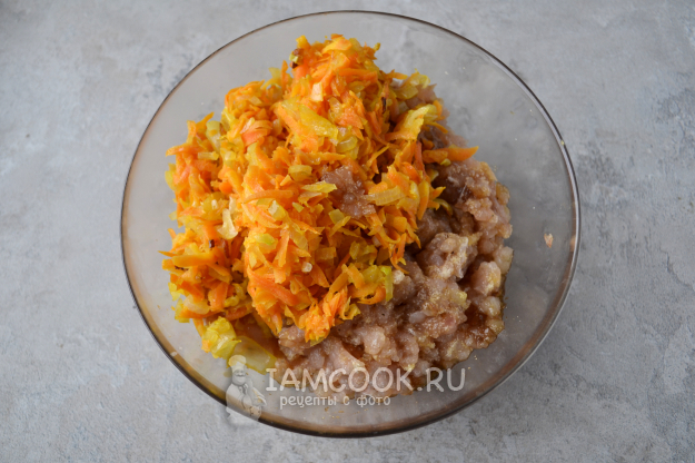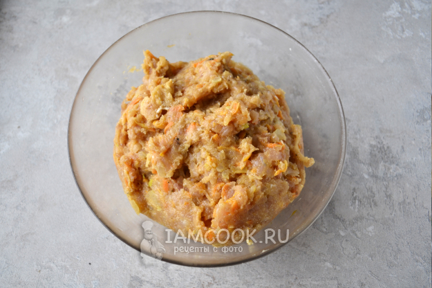 Тщательно перемешайте фарш с овощами до однородной массы.
