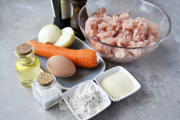 Подготовьте продукты для котлет из щуки с морковью и луком.