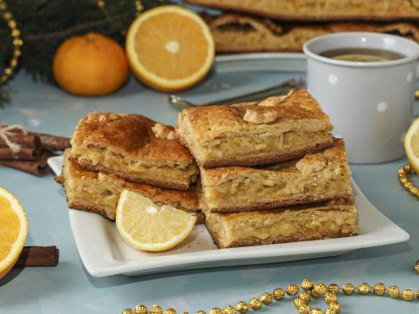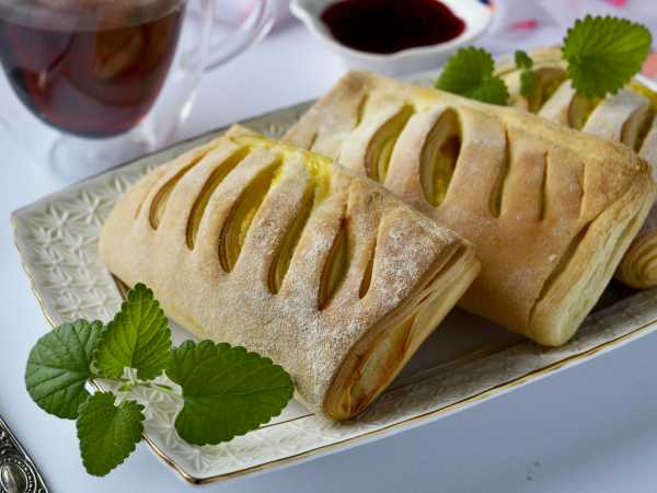 Для удобства в работе тесто разделите на две-три части и каждую часть очень тонко раскатайте. Тесто должно быть очень тонким, чтобы ладонь сквозь него просвечивала. От этого зависит вкус и структура слоеного теста - не стоит лениться, чтобы на выходе не получить жесткий сухарик. Смажьте тесто сливочным маслом или маргарином, не растапливая его.