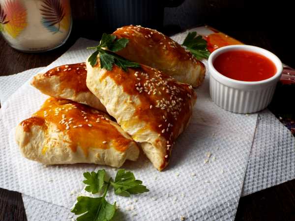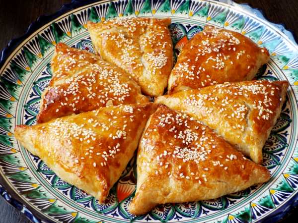 Традиционная формовка тоже имеет место быть. Выложите самсу на смазанный маслом противень или выстелите его качественным пергаментом. Смажьте все заготовки взбитым яйцом и посыпьте кунжутом. Выпекайте самсу с курицей и картошкой в разогретой до 190-200 градусов духовке 25-35 минут, ориентируясь на свою духовку.