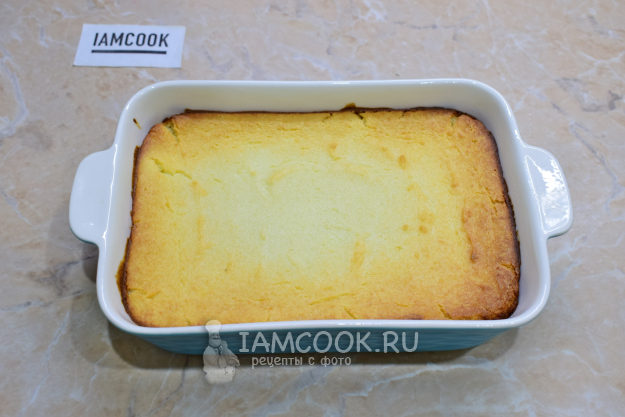 Когда запеканка будет готова, её центр перестанет колыхаться, а поверхность станет золотистого цвета. Вытащите запеканку из духовки и немного остудите.