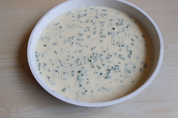 Режем мелко лук и также добавляем его в наше кефирное тесто.