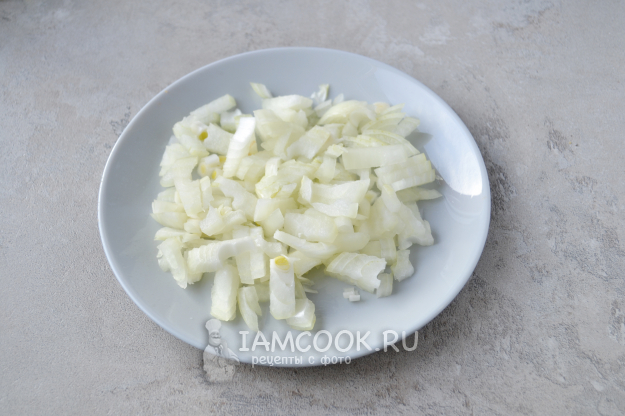 Крупную луковицу очистите от шелухи и не крупно нарежьте.