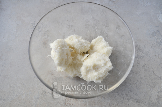 Затем руками отожмите сок с редьки в другую посуду. Отжатую редьку положите в глубокий салатник.