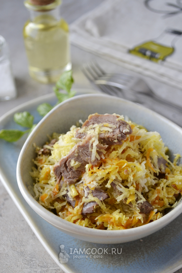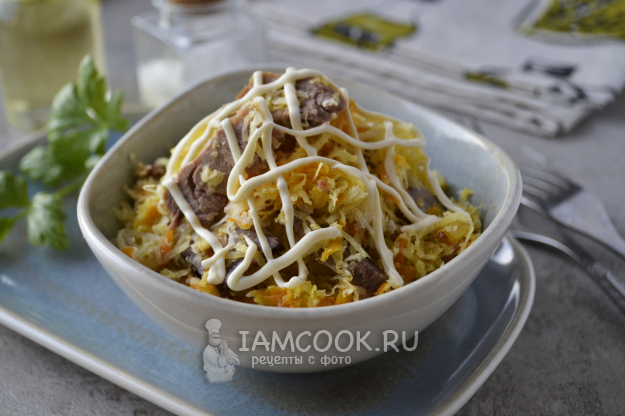 Классический салат "Архиерейский" с редькой и говядиной готов.