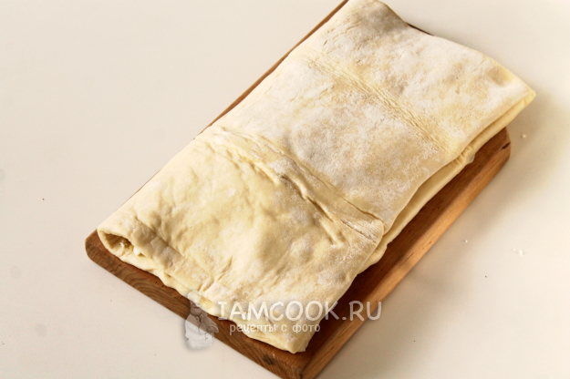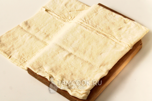 Слоеное тесто, если нужно, предварительно оттайте, разверните полотном.