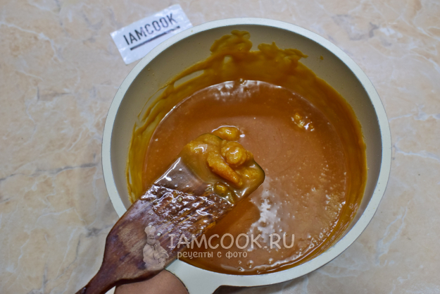 Мешайте, чтобы карамель растаяла в сливках. На это уйдет несколько минут.