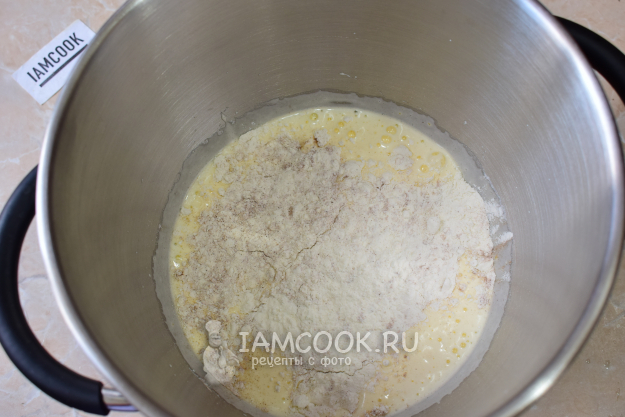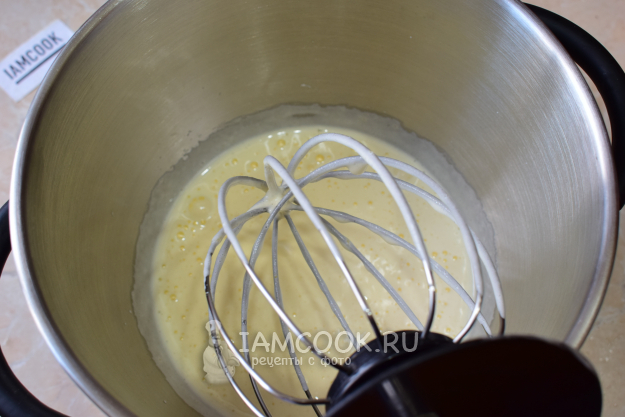 Вмешайте к взбитым яйцам муку с содой и корицей. Подливайте растительное масло. Размешайте до однородной массы.