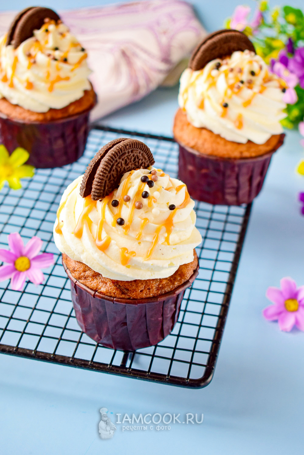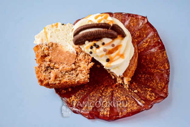 Морковные капкейки с соленой карамелью готовы! Дайте им постоять в холодильнике, чтобы они настоялись и крем застыл.