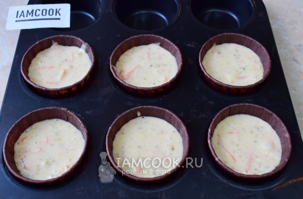 Готовое тесто разлейте в специальные формочки для капкейков. Наполняйте тестом, не доходя до самого верха. В процессе выпекания тесто немного поднимется. Поставьте форму в духовку, разогретую до 180 градусов, на 30 минут. При выпекании ориентируйтесь по своей духовке.