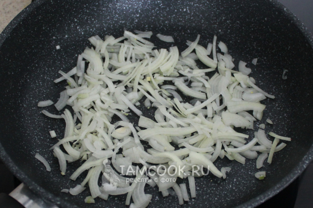 Для начинки нашинкуйте лук и обжарьте его при помешивании на сковороде на растительном масле до зарумянивания. Если надумаете добавить морковь, то её нужно натереть и обжаривать с луком. Слегка посолите.