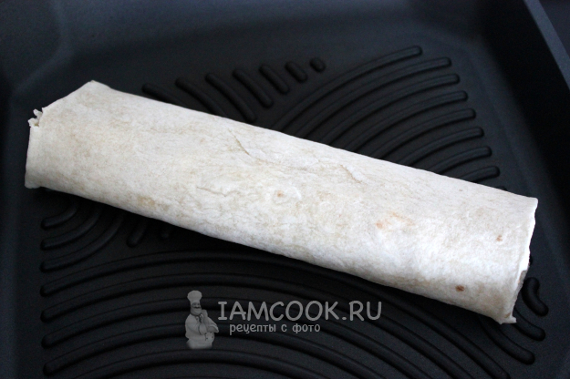 Подверните с боков края лаваша, затем скрутите лаваш с начинкой в рулет. Обжарьте бухлаваш на сковороде, на гриле или запеките до хрустящей корочки в духовке на противне.