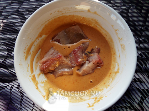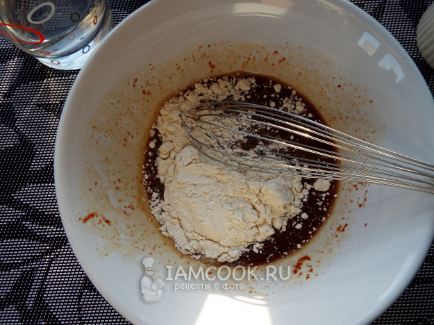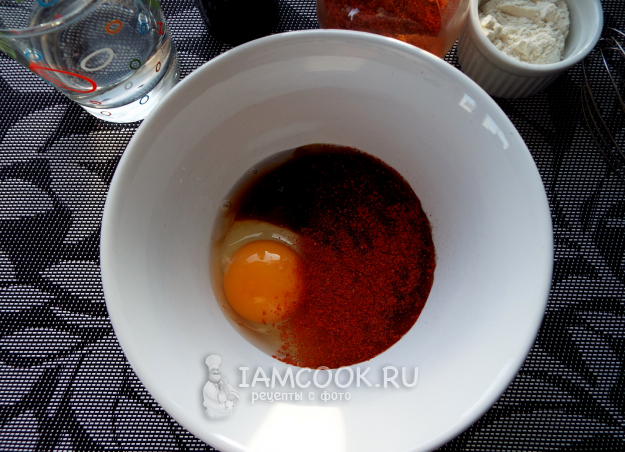Яйцо, соевый соус, паприку и воду смешать в миске.