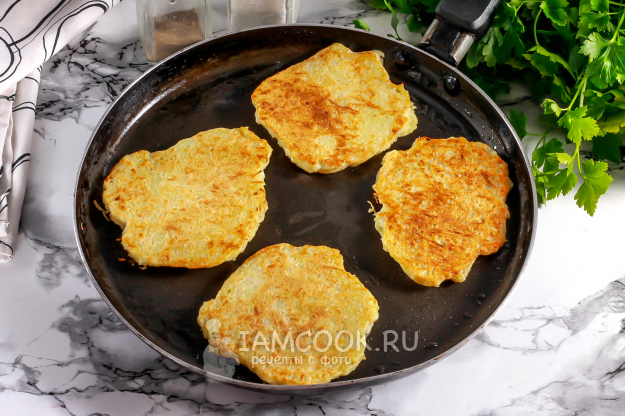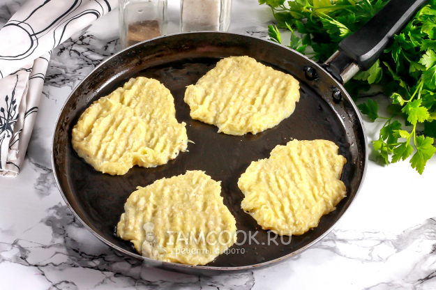 Затем переверните драники на другую сторону и обжарьте такое же количество времени до румяности.