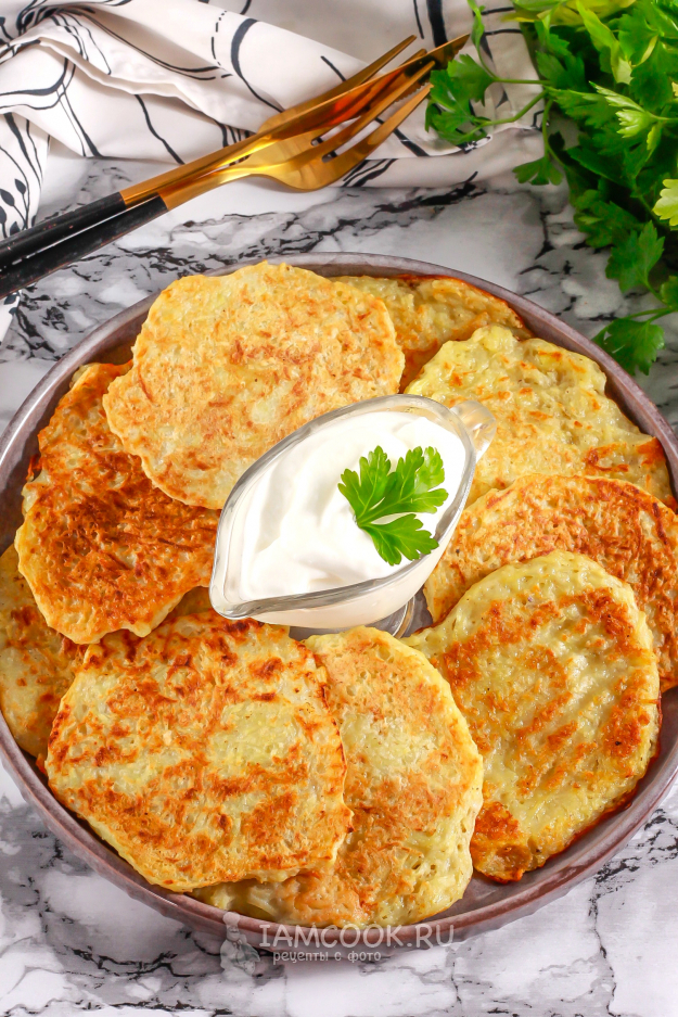 Выложите ароматные картофельные драники ПП на тарелку и подайте к столу со сметаной любой жирности или другим соусом по своему вкусу. Подается блюдо горячим! Можно дополнить его натертым сыром или сырной нарезкой.