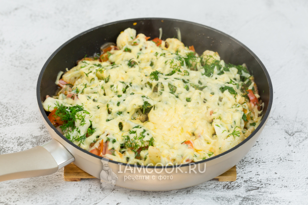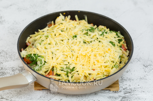 Накройте крышкой и готовьте до момента, когда сыр расплавится.