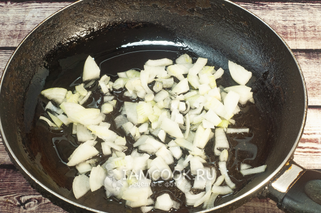 Выкладываем лук на сковороду с подсолнечным маслом.
