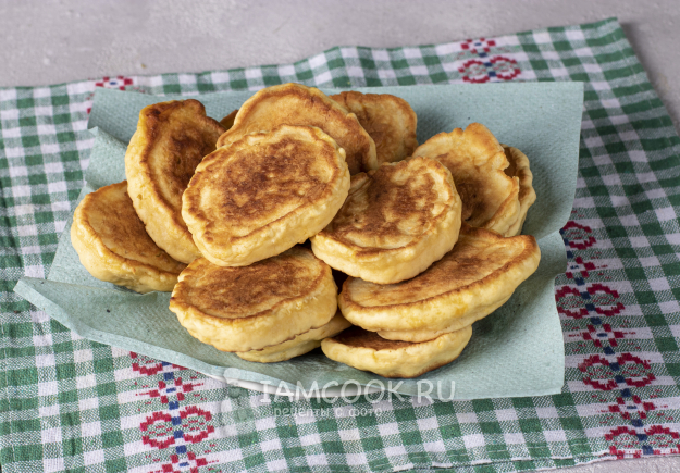 Готовые тыквенные оладьи на молоке выложить на салфетку для удаления лишнего масла.