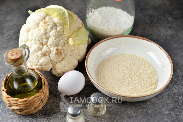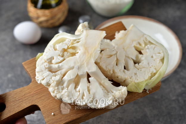 Подготовьте все необходимые продукты для шницеля из цветной капусты. Капусту помойте под проточной водой и обсушите.