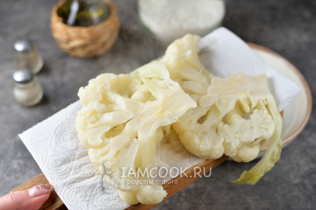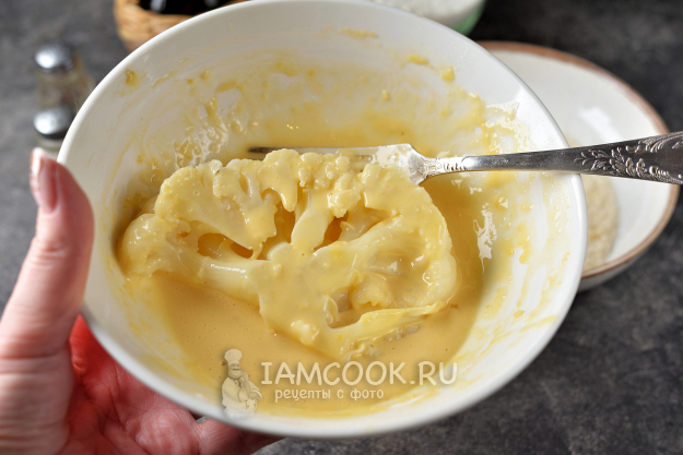 Аккуратно обваляйте куски капусты в кляре, стараясь не поломать их.