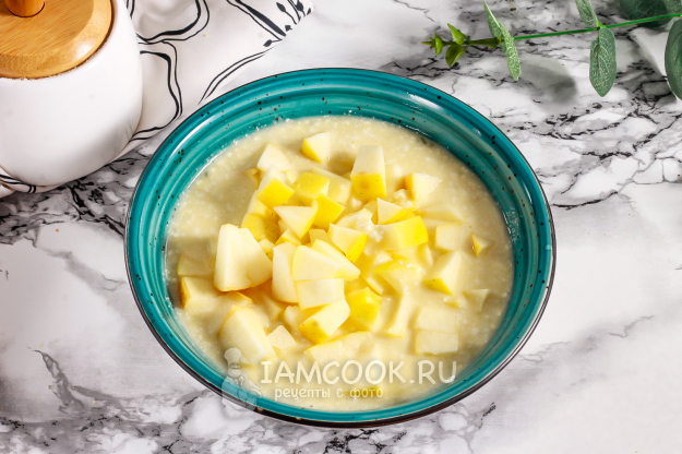 Форму для запекания смажьте сливочным маслом. Поместите ее в духовку и разогрейте технику до 180 градусов. Выпекайте творожно-рисовую запеканку с яблоками примерно 40-45 минут до румяности.
