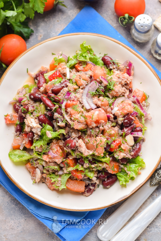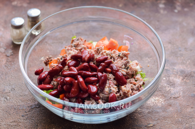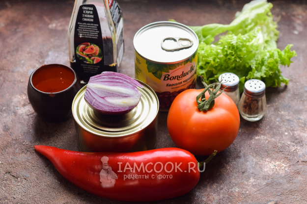 Подготовить все ингредиенты для салата с сайрой и фасолью.